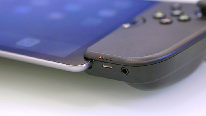 The iPad connects to the Gamevice via the Lightning connector and receptacle. It features power pass-through charging to charge the iPad while you play, an audio DAC and 3.5mm headphone jack.
