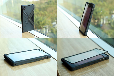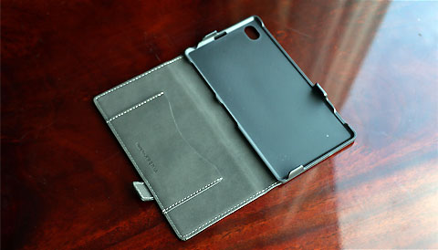 The Muvit Slim Folio is the more elegant one, a typical portfolio case for the Xperia Z1. It has a tailored polycarbonate cradle topped with some good quality polyutherane flip cover lined with stitching contour.