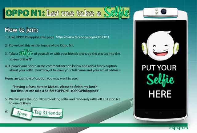 5) We will pick the Top 10 best looking selfie and randomly raffle off an Oppo N1 to one of them.
