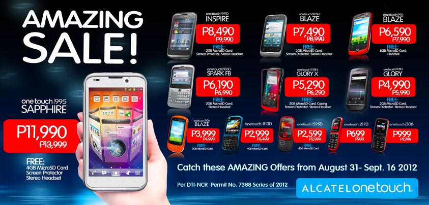 Alcatel is holding a nationwide sale of all their Android smartphones starting tomorrow and until September 16, 2012. Check out the poster for details of the discounts below.