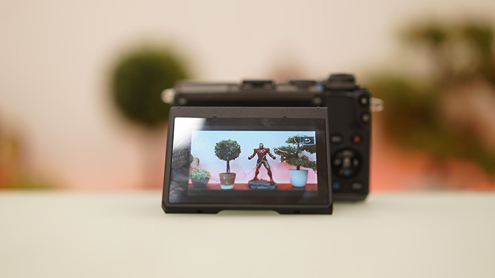The 3-inch screen is touch-enabled so it’s easier to set the focus while framing your shot. The 180-degree tilt of the LCD also makes it easier for taking selfies or when video blogging.