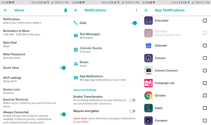 Again, like the Ionic, to maintain sync between the Versa and your device, you’ll have to keep your Bluetooth and GPS toggled, which will certainly drain the battery of your smartphone.