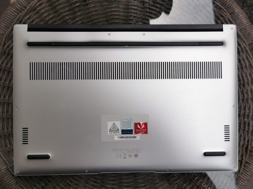 Flipping it over reveals the hinge and rubber feet of the device. At the top is the rectangular grille for air ventilation while near the rubber feet are the downward-firing speakers.
