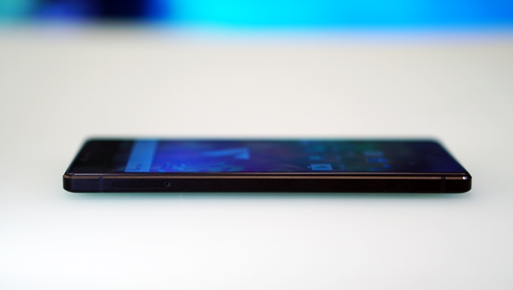 To the left-hand side is where the hybrid card slot sit that accepts a micro-SIM and a nano-SIM or a microSD card for storage expansion.