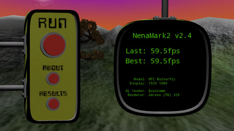 First off is Nenamark 2. The HTC Butterfly scored 59.5fps which looks like a typical frame rate offered by many other handsets before it.