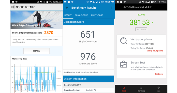 Under the tough rubber case and chassis of the BV7000 is a 1.7GHz MediaTek MTK6737T quad-core CPU and 2GB RAM. Its performance is decent as apps launch fast and smoothly. The fingerprint scanner is very responsive and never failed during our testing. The BV7000 can run graphically intensive games (such as Mobile Legends) smoothly, but the back of the phone is prone to heating up slightly.