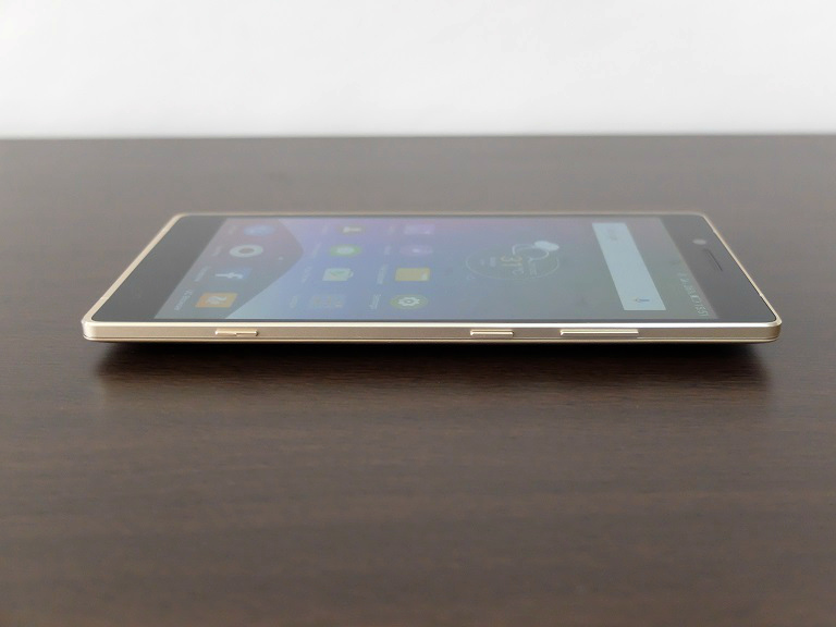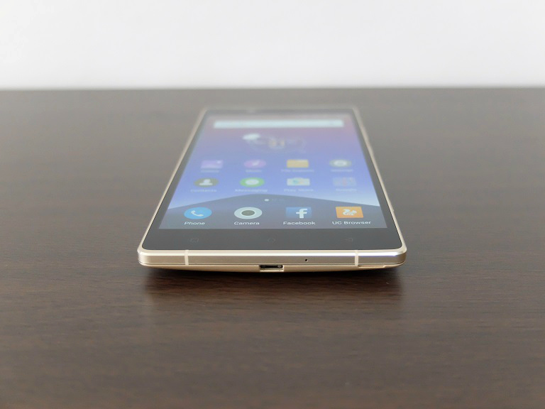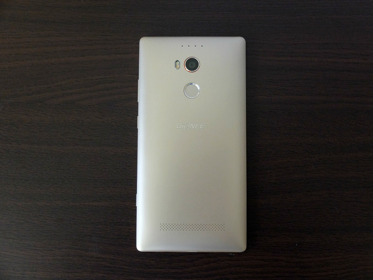 Build and design-wise, the Elife E8 is a stunner. We really liked the gold color and shiny chamfered edges which match the accents on the camera and fingerprint scanner. The rear, although plastic, has a nice paint job that blends well with the metal sides.