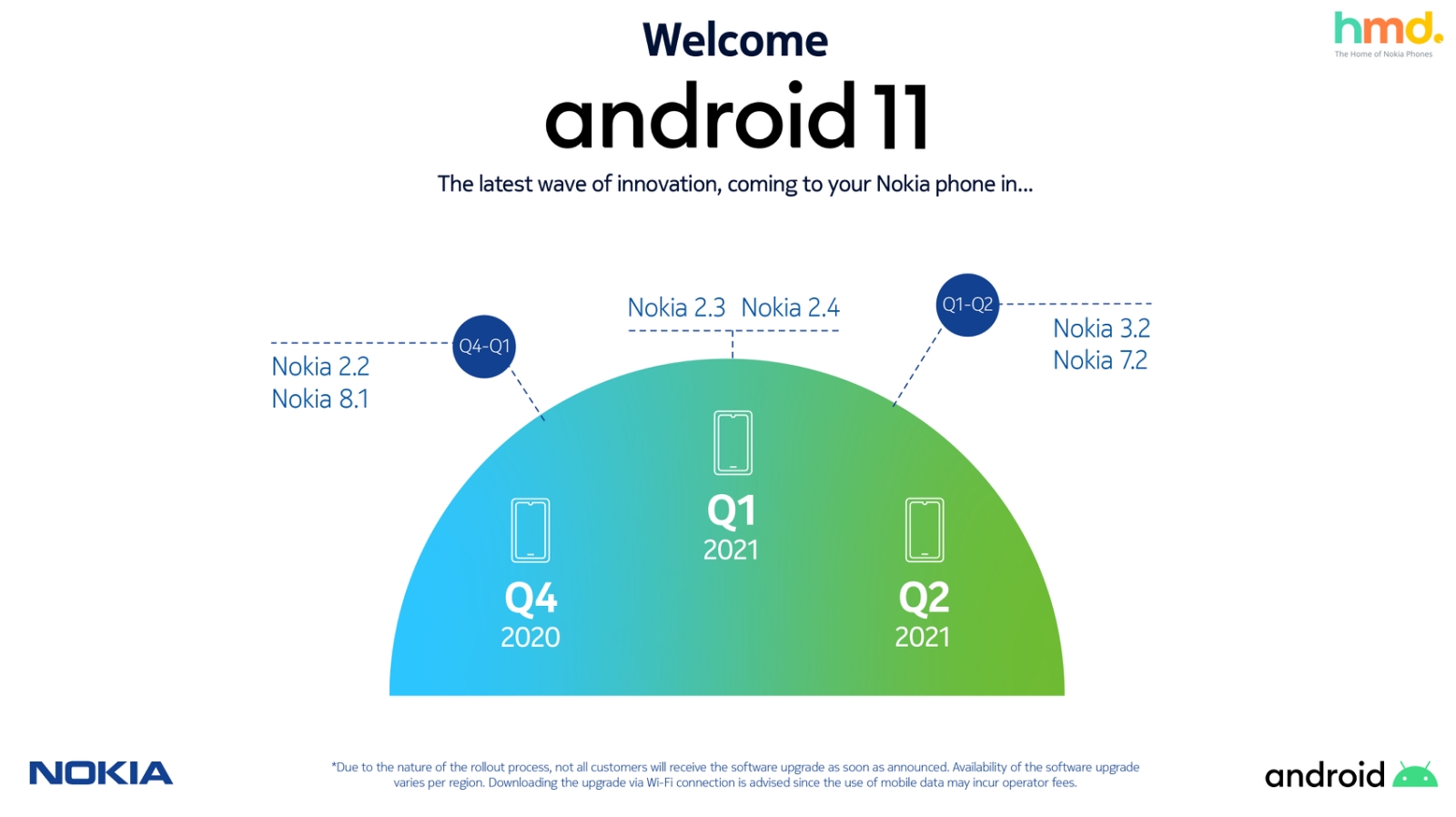 The rollout, which will commence in the Q4 of 2020, will first bring the latest Android 11-ready smartphones Nokia 8.3 5G and Nokia 5.3. Owners of the Nokia 2.2 and Nokia 8.1 will also receive the first update of Android 11 this year. The Nokia 2.3 and 2.4 will receive Android 11 on Q1 2021 while Nokia 3.2 and 7.2 will get it between Q1 to Q2 of 2021.