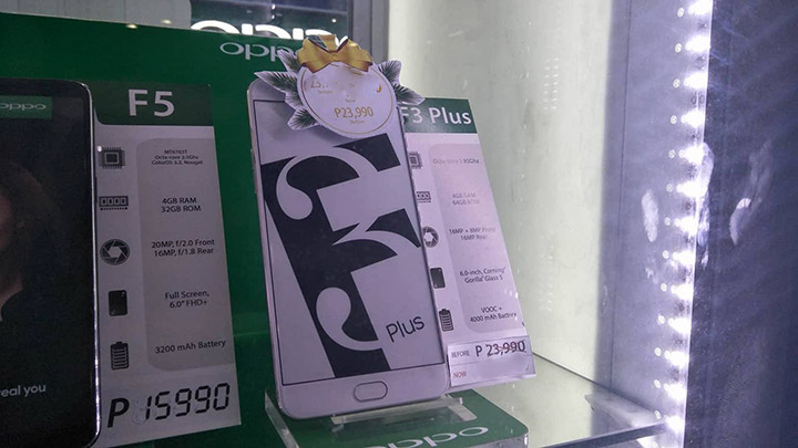 We’ve spotted the OPPO F3 Plus bearing a huge markdown in one of the authorized dealers in Quezon City.