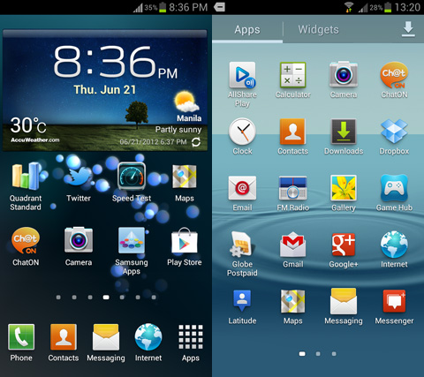 The Galaxy S3 came out with Android Ice Cream Sandwich (ICS v4.0.4) out of the box. They also added a custom skin using Samsung’s own TouchWiz UI 4.0. The UI has improved a lot since the first time we saw it in the Galaxy S3 a couple of years ago. It’s simple yet fluid and we’re liking the design of the native icons, widgets and layout.
