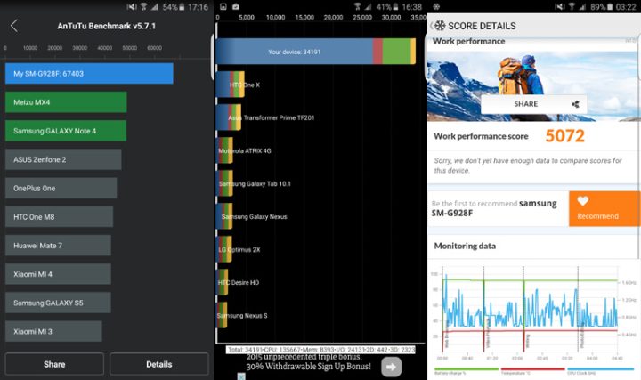One of the more surprising results we saw was the battery test. With a 3,000mAh battery, we thought the S6 Edge+ would only perform as well as its smaller sibling and that the 400mAh difference will be compensated by the much bigger screen.