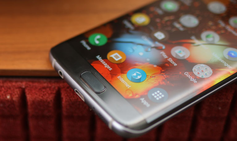 At the back is the 12MP rear camera with dual tone, dual LED flash. The back panel is still layered with Gorilla Glass 4 and looks cleaner without the extra Samsung markings. The handsets come in three colors — black white and silver. Of the three, we liked the silver color the most. The back slightly tapers towards the edges to give it better grip on the hand and reduces that sharp corner that somewhat cuts the palm when holding the device tightly. The camera module still protrudes a bit but not that much compared to the S6 Edge.