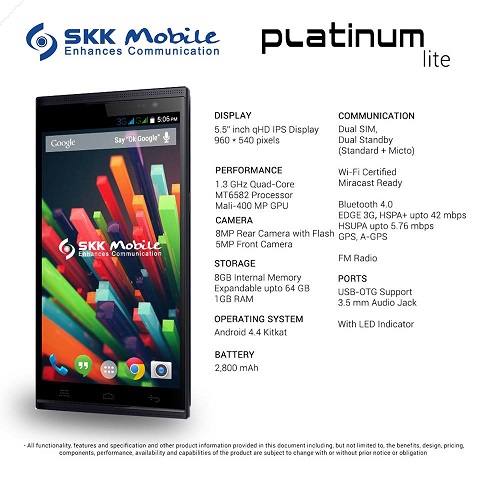 The SKK Mobile Platinum Lite has a price tag of Php5,999 and will also be available in Q4 2014.
