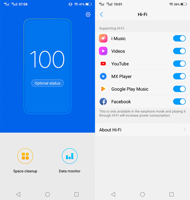 When it comes to apps, it has Vivo’s native apps like the V-Appstore, iTheme, iManager, EasyShare, and Vivo app to view the company’s products. Google’s own apps are here as well, along with pre-installed apps like Lazada, Facebook, and WPS Office, which you can uninstall. All in all, you’re getting 107.41GB of usable space out of the 128GB. You can expand it using USB OTG or a microSD card, but you’ll lose SIM 2 connectivity.