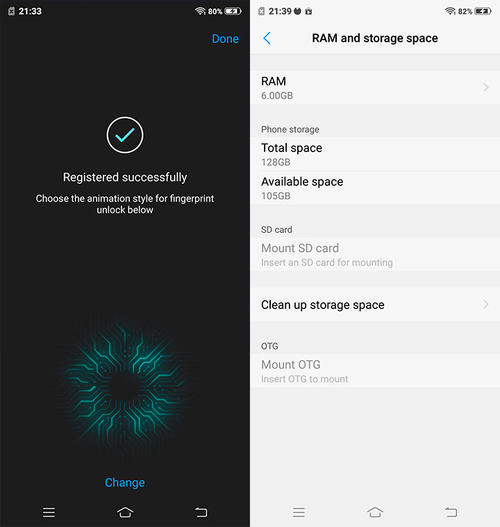 The Under-Display fingerprint scanner is as responsive as a standard fingerprint scanner. It doesn’t work with wet fingers, though, and is not as fast as the scanners found in more expensive flagships. There’s a second delay but is not really a big deal, and the cool animation makes it worthwhile.