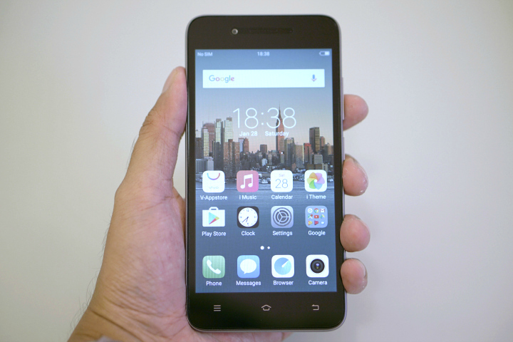 The device doesn’t look that difference from the Y55 with its utilitarian candy bar design with a fair amount of bezels surround the 5.2-inch qHD IPS display. Above the display are the 5MP selfie camera, the earpiece, and a couple of sensors. Below are three capacitive buttons for navigation.