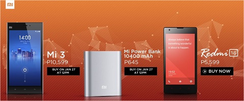 The Mi Power Bank 10400mAh costs Php645 while the Mi 3 and Redmi 1S are priced at Php10,599 and Php5,599, respectively.