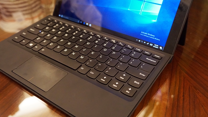 The keyboard cover magnetically snaps onto the main unit and it features the familiar looking AccuType keys of Lenovo. Unlike other keyboard covers, the travel of the key is satisfying for fast typing. It also has a backlight to help in the dark.