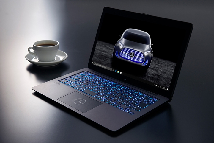 The VAIO Z Mercedes-Benz Collection is a special edition notebook with a Mercedes Benz logo engraved on its hinge and touchpad, the name of the car maker above the keyboard, and an image of a Mercedes-Benz car, either the Vision Tokyo concept car or a classic 300SL, on the lid. Also, it makes car noises when booting up.