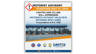 Motorists passing through RFID-only designated lanes without valid RFID in CAVITEX will be apprehended starting May 17, 2021. As announced on the CAVITEX's official FB page, CAVITEX and C5 Link will apprehend motorists entering RFID lanes without valid RFID in accordance to RA 4136 or "Land Transportation and Traffic Code." Those who don't have Easytrip RFID yet are encouraged to have it installed through the installation sites or use the cash lane. NLEX Corporation has shared on Twitter that MPTC will be waiving toll fees on its expressways, specifically on North Luzon Expressway (NLEX), Subic–Clark–Tarlac Expressway (SCTEX), CAVITEX, and Cavite–Laguna Expressway (CALAX) for a limited time.