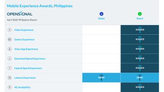 In OpenSignal's latest Mobile Network Experience Report for April 2020, Smart outperformed Globe in 6 out of 7 categories, including the first-ever Games Experience category. Nonetheless, Globe has shown notable improvements across the board. The category breakdown is as follows: Video Experience Using OpenSignal’s metric, Smart scored 55 points out of 100 while Globe is trailing behind at 39.8 points. Focusing solely on 4G performance, Smart almost reaches OpenSignal's very good rating at 62.4 points while Globe only manages to get a fair rating with 43.7 points. Games Experience OpenSignal's latest Games Experience category is experiential and measured from 0-100. Voice App Experience Voice App Experience is another new addition to OpenSignal's categories. Download Speed Experience In OpenSignal’s testing, Smart achieved a weighted average download speed of 10.6Mbps, while Globe managed 7.6Mbps. 4G Availability Lastly, OpenSignal compared both networks' 4G availability based on the % of time available. Read more in our articles including "Smart wins OpenSignal's Games Experience category, Globe catches up in Latency Experience (April 2020)" and "iPhone 17 series now available via Globe postpaid plans".