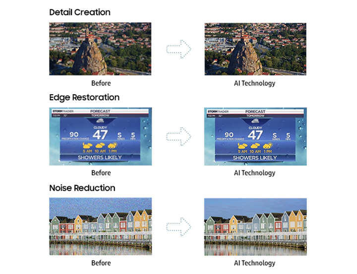 The Q9S analyzes millions of images to transform low resolution content into high resolution. The AI technology selects the optimal filter and converts the source into a high-quality image. The image is then processed 64 times to offer natural images in high-resolution, without compromising gradation in the picture.