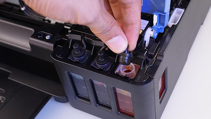 To see the printing head along with its other internals, another layer is to be lifted up with an arm that locks it in place. Here, you can refill the ink tanks quickly.