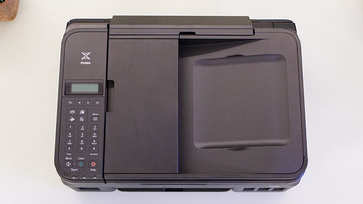 Canon migrated the control buttons to the left side, this time including a number pad to use for faxing documents. Here we have the power button along with the stop button and a Black/Color start button.