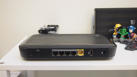 The router is a bit larger than the usual ones and also a bit heavier because of the space occupied by the HDD inside the device. The unit sits flat on its belly to give it a stable position and avoid shaking the HDD inside the box.